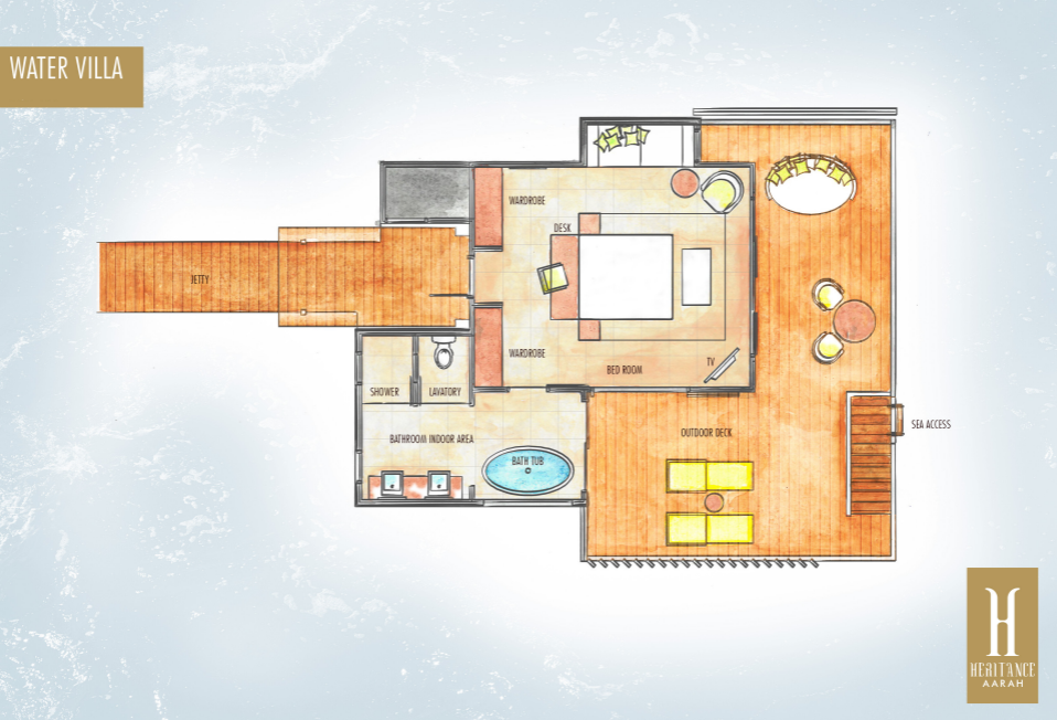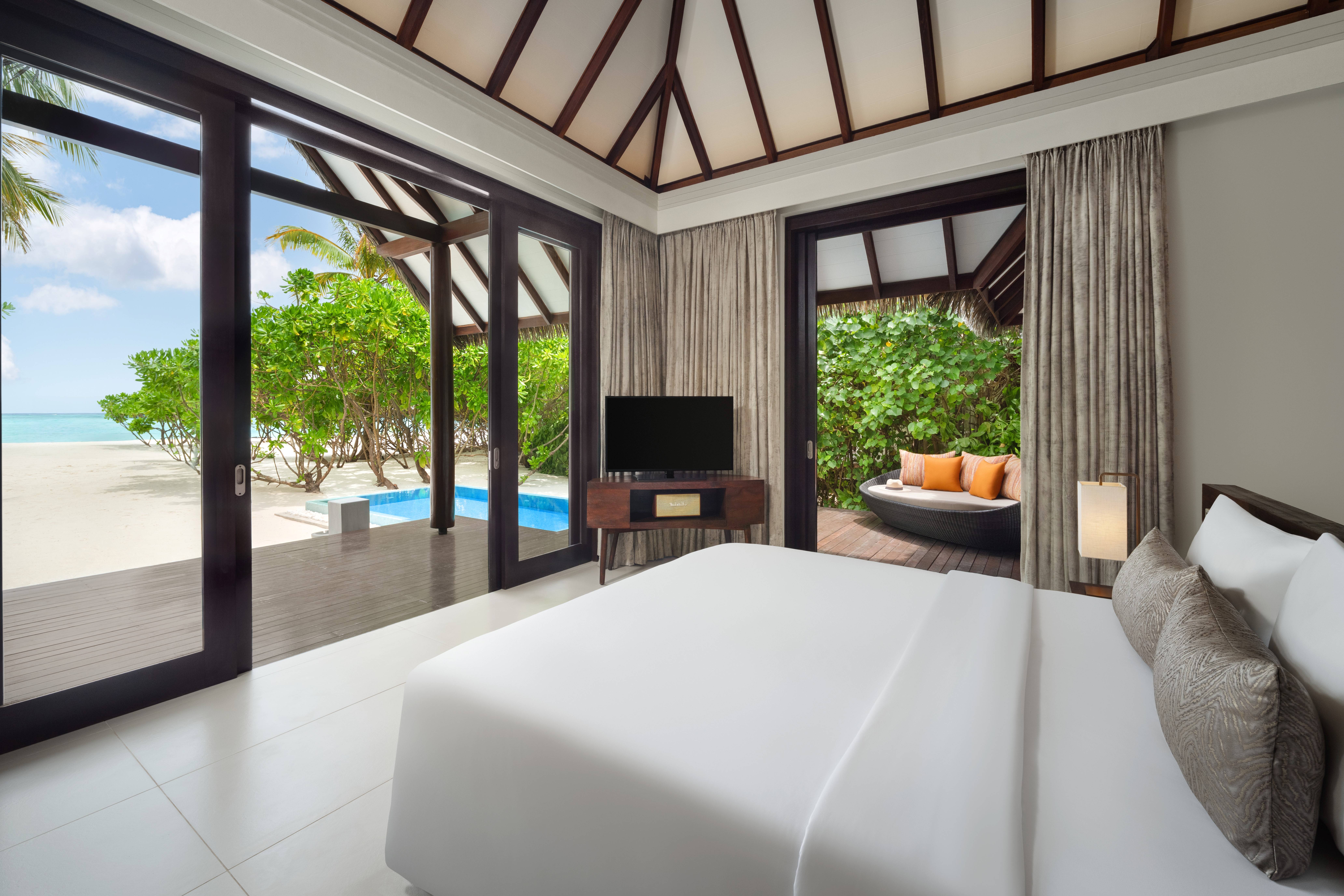 All room types include: Flat-screen TV with cable channels, Marshall Bluetooth speaker, pillow menu, in-room safe, complimentary Wi-Fi, snorkelling fins and masks, fully stocked mini bar (replenished daily), tea/coffee and espresso making facilities and personalised butler service.
