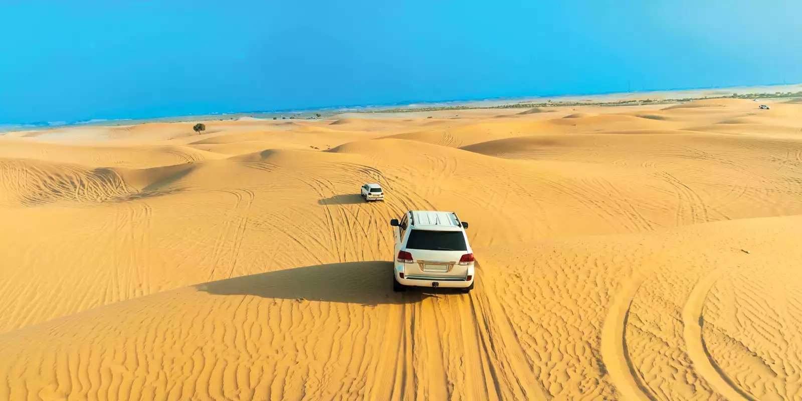 The Desert Safari with BBQ Dinner offers a unique blend of adventure and cultural immersion, promising an unforgettable evening amidst the breathtaking desert backdrop. Embark on a heart-pounding adventure with exhilarating dune bashing in a comfortable air-conditioned 4x4 vehicle, then let the enchanting desert sunset cast a spell of magic over the landscape. At an authentic Bedouin camp, engage in sandboarding, camel rides, henna artistry, and the chance to don traditional attire while relishing refreshing treats. As the stars twinkle above, relish a delectable barbecue dinner, accompanied by mesmerizing performances from a belly dancer and a captivating Tannoura dancer. Enjoy a sumptuous buffet dinner with a range of dishes, and unlimited soft drinks, coffee, and tea throughout the evening.