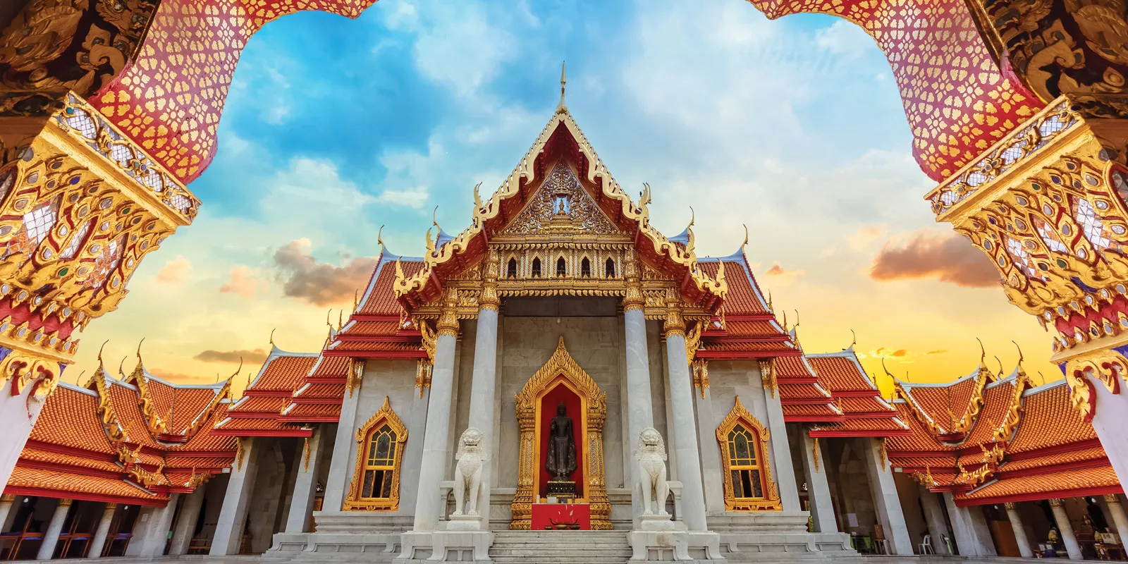 Embark on a city tour, visiting Wat Pho and the Grand Palace. Take a longtail boat ride on the Chao Phraya River to the Pak Khlong Talat Flower Market. This evening enjoy dinner at a local restaurant.